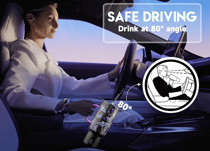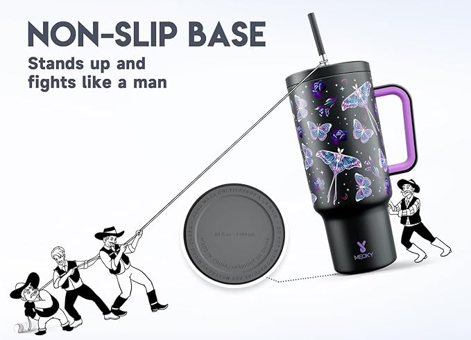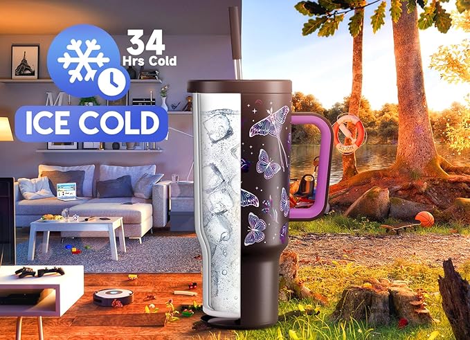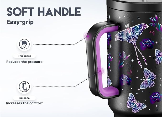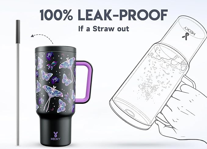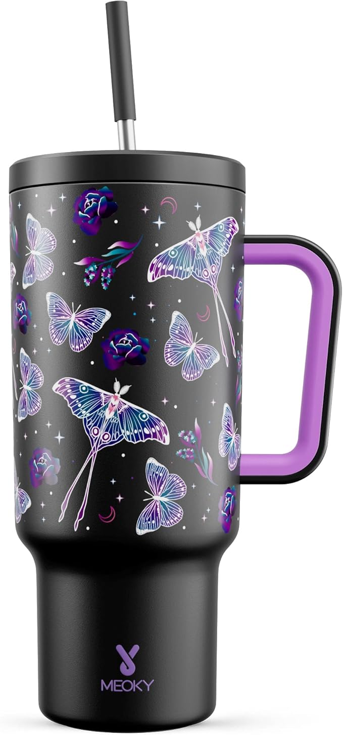 Meoky 40 oz Glow in the Dark Tumbler with Handle and Straw, Tumbler with Lid and Straw, Insulated Stainless Steel Travel Mug, 100% Leak-proof, Keeps Cold for 34 Hours (Butterfly)