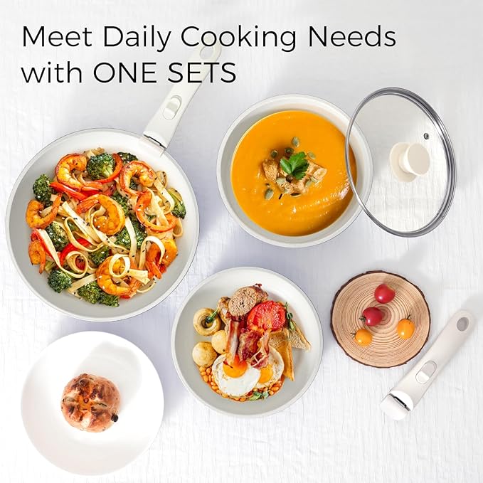 About This Multi-Functional Cooking Set – SODAY 15 pieces cookware set includes 1pcs 11" Saute Pan,1pcs 8&10.6"Frying Pans, 1pcs 2QT... Read more