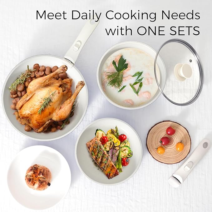 About This Multi-Functional Cooking Set – SODAY 15 pieces cookware set includes 1pcs 11" Saute Pan,1pcs 8&10.6"Frying Pans, 1pcs 2QT... Read more