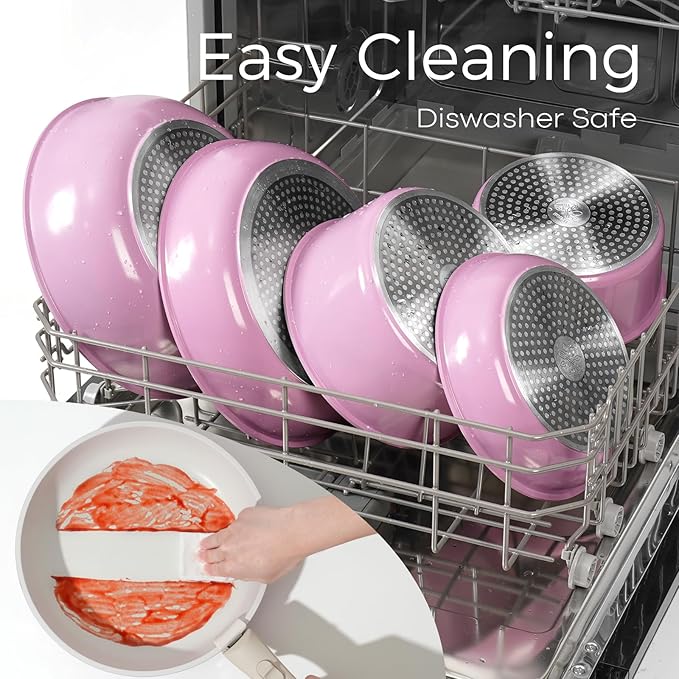 15Pcs Pots and Pans Set Non Stick, Cookware Sets with Detachable Handle, Nonstick RV Kitchen Cooking Tools Removable Handles, Oven Safe, Induction Fast, Stackable Induction Cookware, Pink