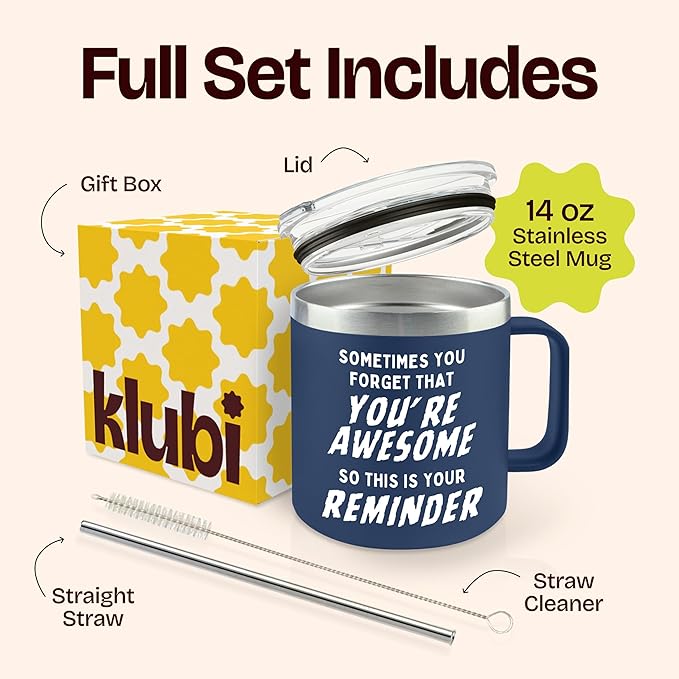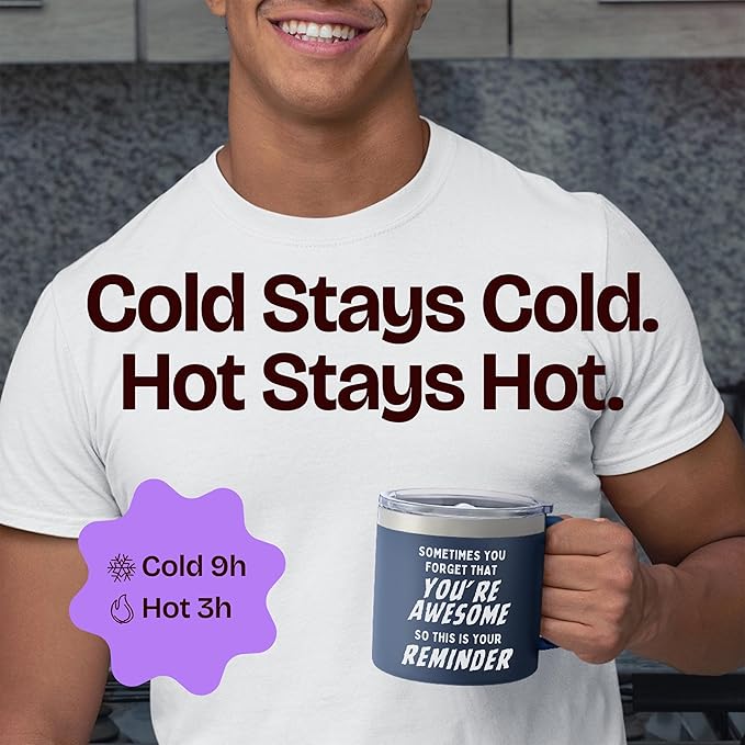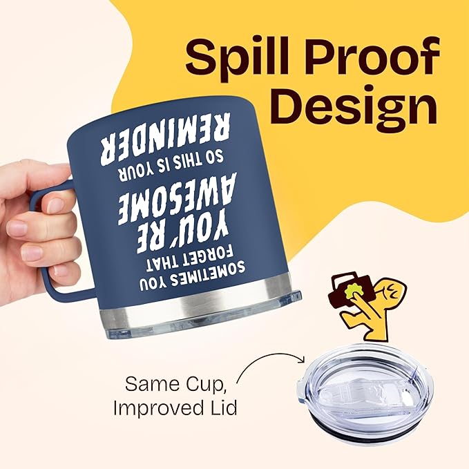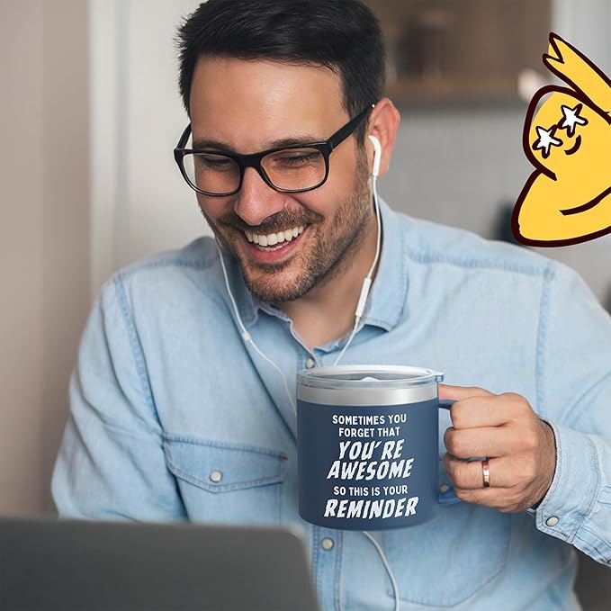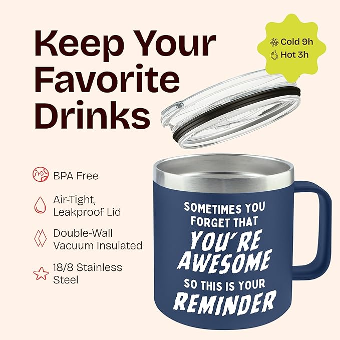 Christmas Dad Gifts Cup - Sometimes You Forget Your Awesome Present Navy 14oz Motivational Coffee Tumbler Christmas Idea for Boyfriend, Husband, Dad Inspirational Mugs Gift for Men Who Have Everything
