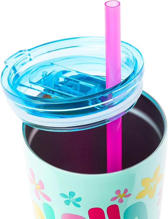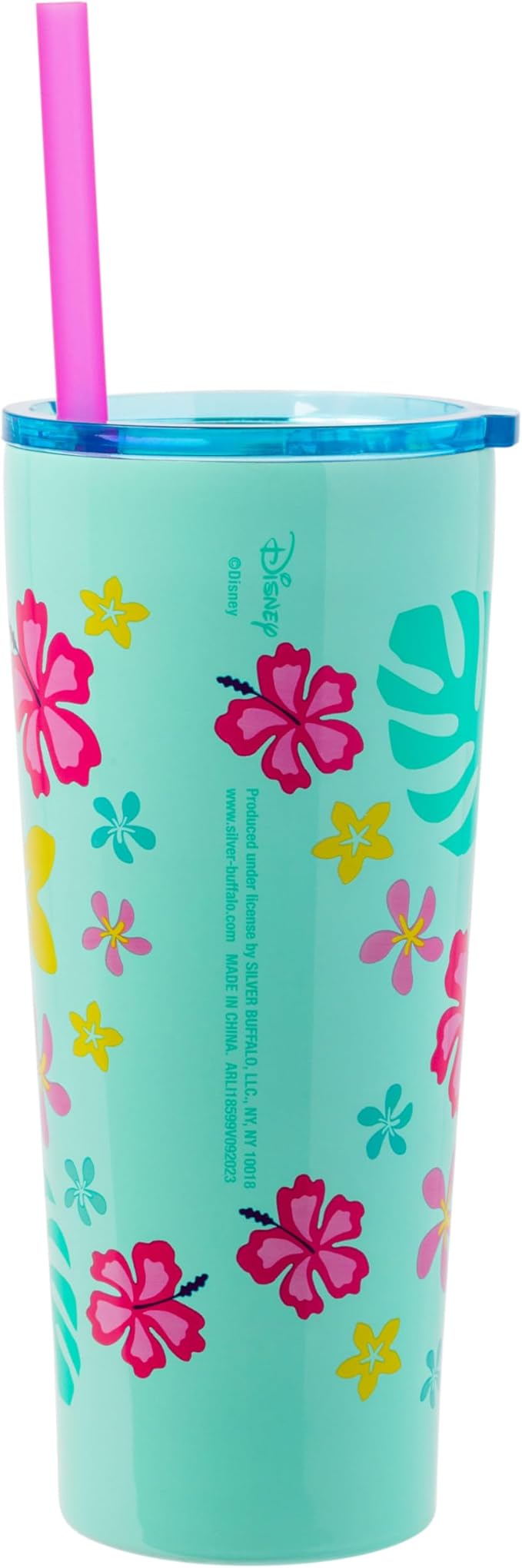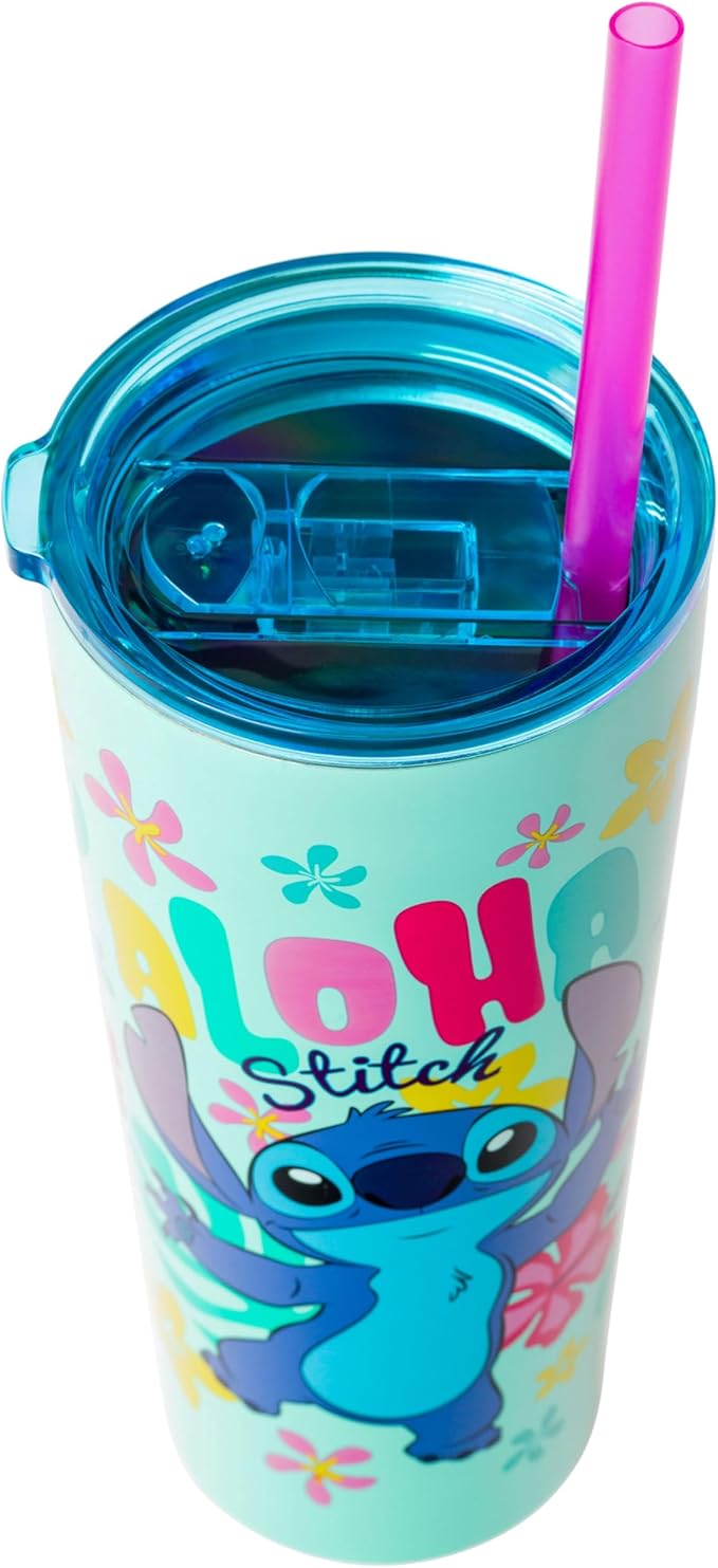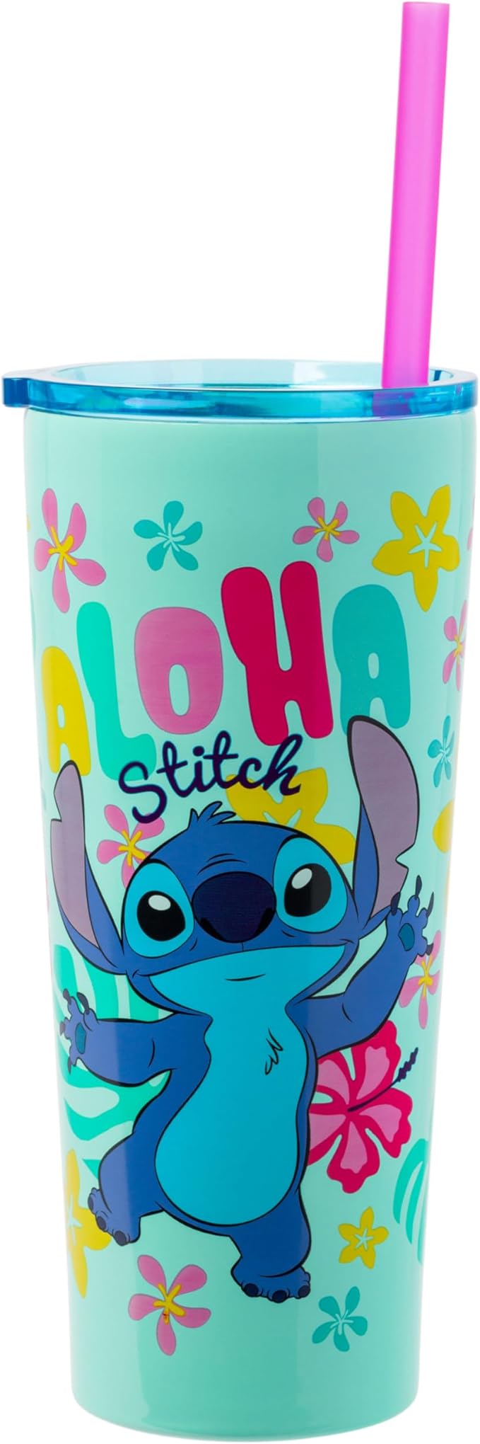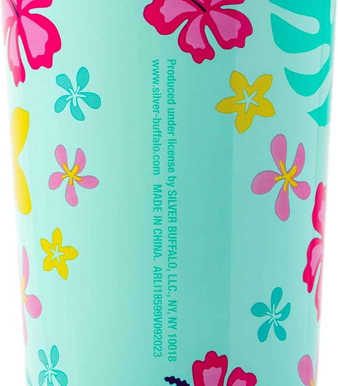 Silver Buffalo Disney Lilo and Stitch Aloha Double Walled Tumbler with Straw, 22 Ounces
