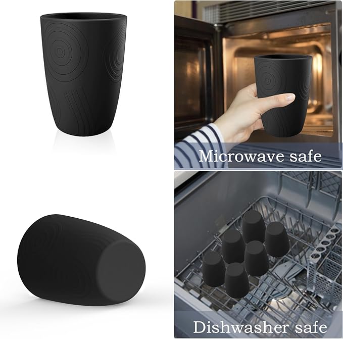 Homienly Wheat Straw Cups Set of 6, 12 OZ Alternative Plastic Cups Reusable, Stackable Drinking Cups, Water Cups, Coffee Cups, Unbreakable Glasses Drinking for Camping, Travel, Party - Black