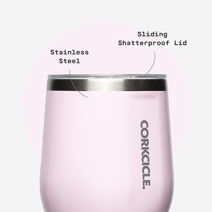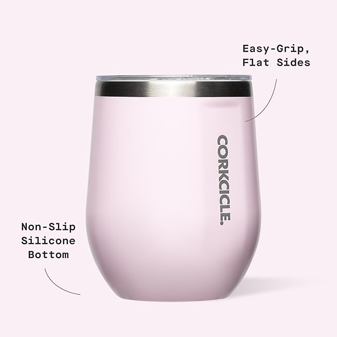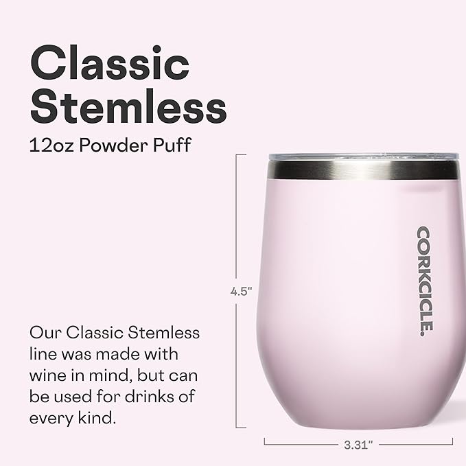 Corkcicle Stemless Wine Tumbler - Keeps Drinks Cold for 6 Hours - Triple-Insulated Stainless Steel - Non-Slip Base - Summer Drinkware Gift - Keeps Drinks Ice Cold - 12 oz - Powder Puff