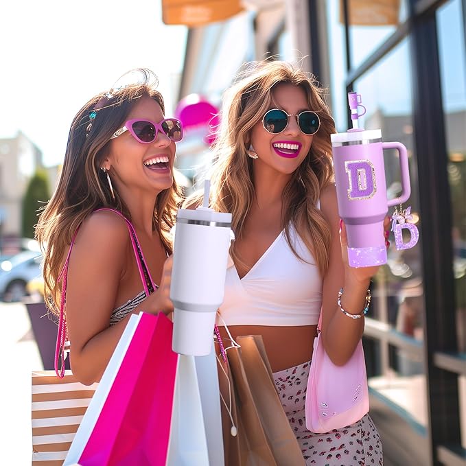 Mity rain 6PCS Cup Accessories Set for Stanley Cup 30oz 40oz tumbler with handle, Including Silicone Straw Topper Cover Cap and Boot, Spill Proof Stopper, Handle Charm, Initials Sticker (Letter D)