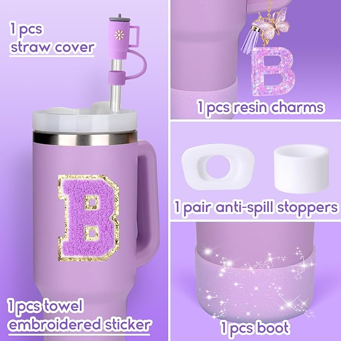 Mity rain 6PCS Cup Accessories Set for Stanley Cup 30oz 40oz tumbler with handle, Including Silicone Straw Topper Cover Cap and Boot, Spill Proof Stopper, Handle Charm, Initials Sticker (Letter B)