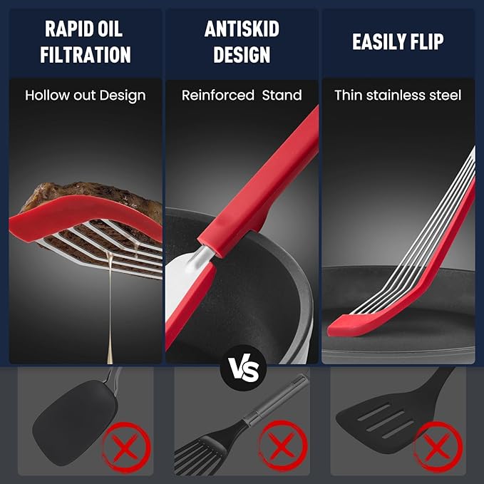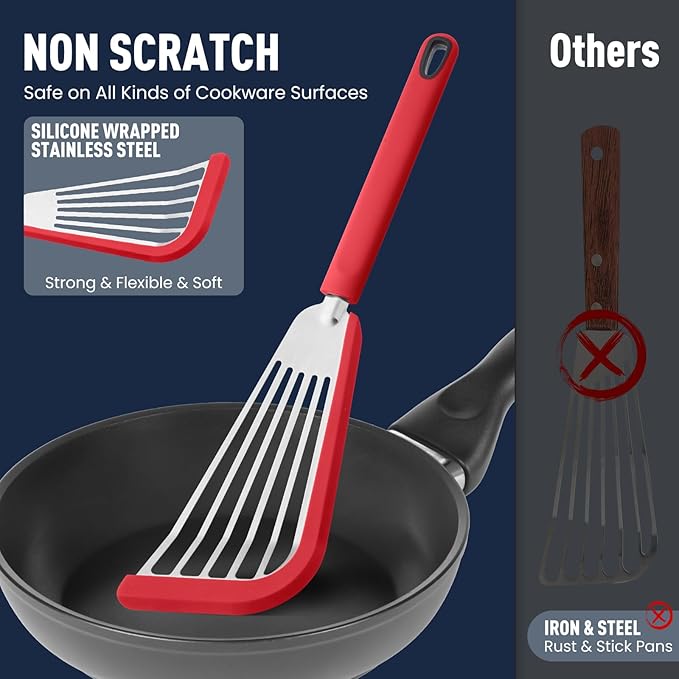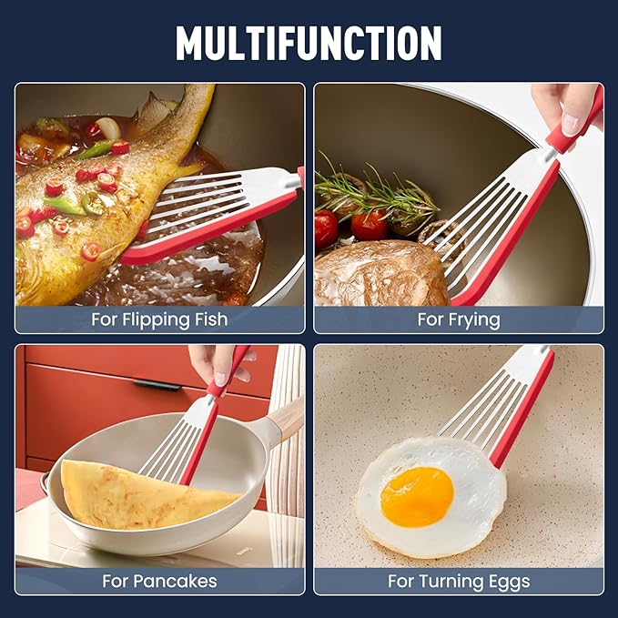 Silicone Fish Spatula Turner Set of 2,2-in-1 Heat Resistant Silicone Slotted Fish Spatulas for Nonstick Cookware,Flexible Thin Stainless Steel Slotted Fish Turner Spatula Flipper for Fish,Egg,Pancake
