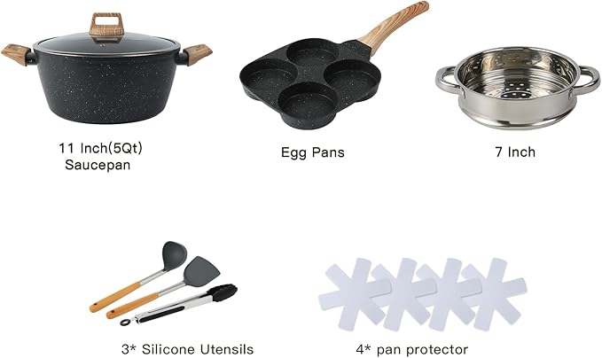 About This 【21PCS Pots and Pans Set Non Stick】21PCS Pots and Pans Set Non Stick with Egg pan1.9 QT Saucepan... Read more