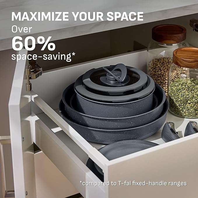 T-fal Ingenio Essentials Cookware Set with Detachable/Removable Handle 11 Piece, Granite Titanium Non Stick, Induction, Oven Broiler Safe 500F, Stackable, Pots and Pans Set, RV Camping, Fry Pans Gray