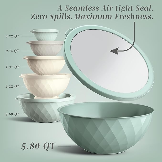 COOK WITH COLOR Mixing Bowls with Lids - 12 Piece Plastic Nesting Bowls Set includes 6 Prep Bowls and 6 Lids, Diamond Design - Microwave Safe, Mint