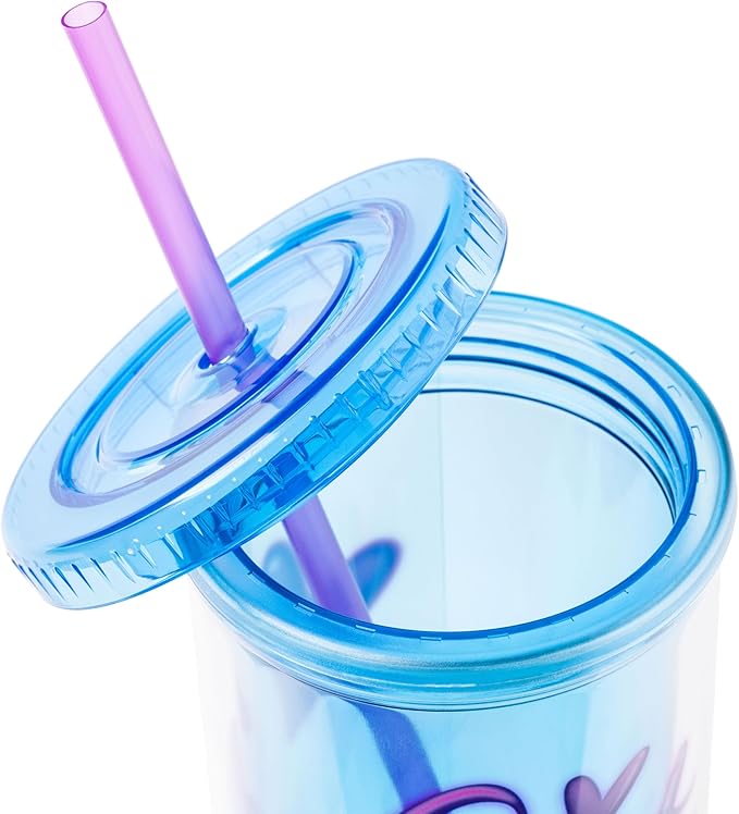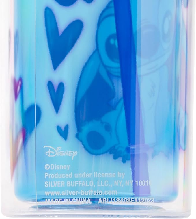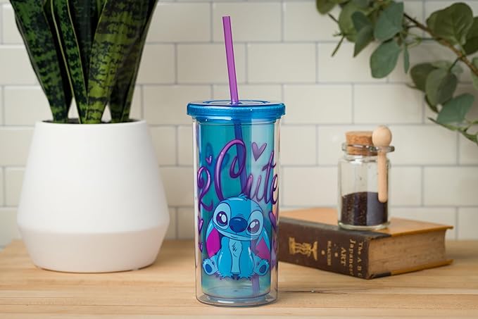 Silver Buffalo Disney Lilo and Stitch “2 Cute” Plastic Tall Cold Cup with Lid and Straw, 20 Ounces