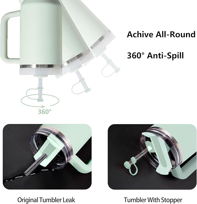 Silicone Spill Stopper Set Compatible with Stanley Cup 2.0 30oz & 40oz with Straw Cover (Set of 2, Mist)
