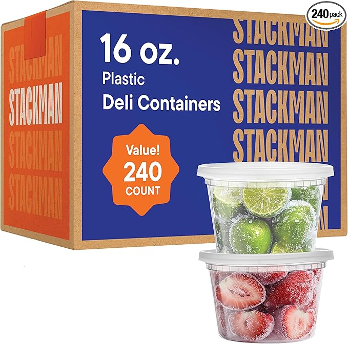 Stack Man [240 Sets - 16 oz.] Clear Plastic Deli Food Storage Containers with Airtight Lids - Soup Containers - Bulk Pack - 240/Case Brand