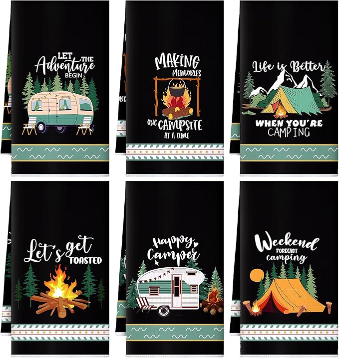 About This Microfiber What You Get: you will receive a total of 6 different styles of camping themed kitchen towels,... Read more