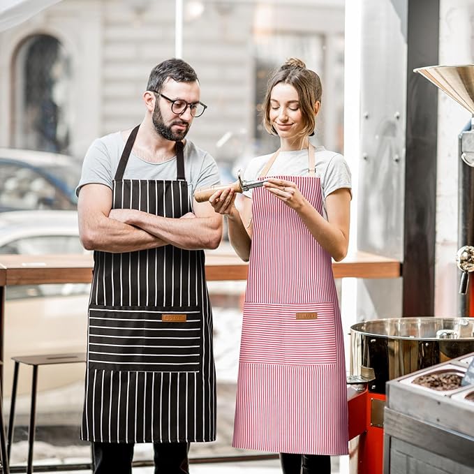 • 2 Large Pockets Design: BeLuyi chef aprons are designed with 2 large pockets. The front pockets of the apron store small items such as cell phones, kitchen utensils, meat thermometers, recipe cards and condiment containers, etc