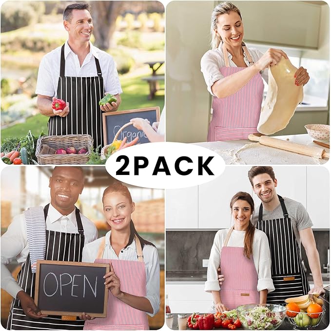 2 Pack Adjustable Bib Apron with 2 Pockets Chef Cooking Kitchen Restaurant Aprons for Women Men