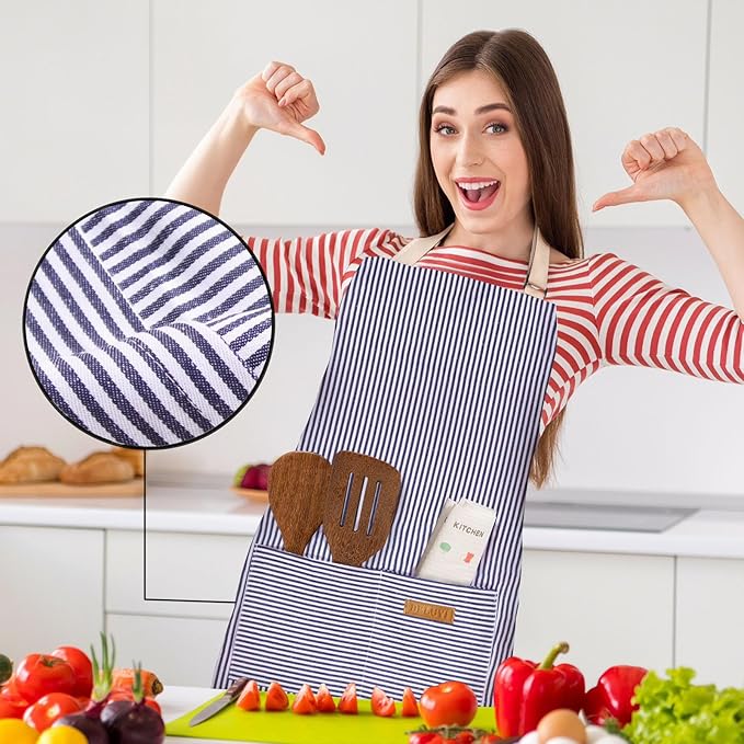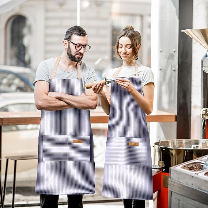 2 Pack Adjustable Bib Apron with 2 Pockets Chef Cooking Kitchen Restaurant Aprons for Women Men