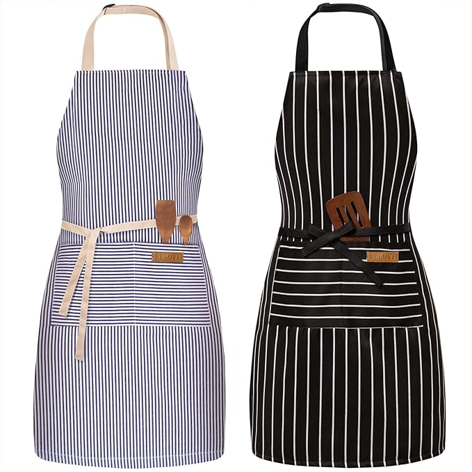 • 2 Large Pockets Design: BeLuyi chef aprons are designed with 2 large pockets. The front pockets of the apron store small items such as cell phones, kitchen utensils, meat thermometers, recipe cards and condiment containers, etc