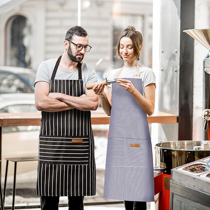 • Machine Washable Resists Wrinkles and Shrinkage: our aprons are machine washable; Please wash with dark colored cloth; bleaching, dry cleaning and tumble drying are not allowed