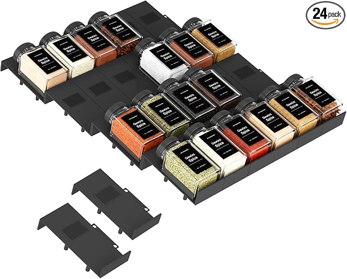Famhap Spice Drawer Organizer, 24PCS Interlocking Expandable Seasoning Rack Tray Insert for Kitchen Drawers, Spice Rack Drawer for Spice Jars