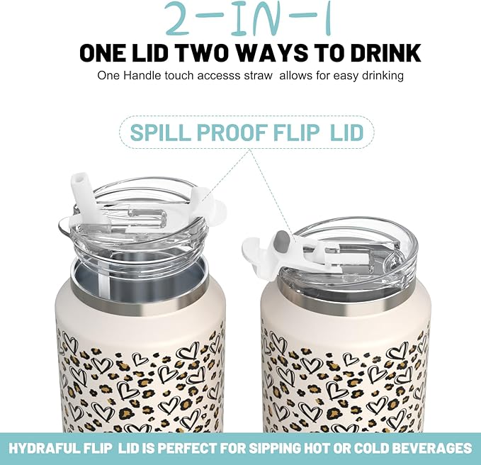 • Innovative 2-in-1 Lid Structure: Experience the best of both worlds with our lid that seamlessly integrates a sipping spout and a flip-top. Adapt to your beverage of choice – sip leisurely or flip open for a satisfying gulp. Versatility meets practicality. 100% leak proof and spill -resistant.