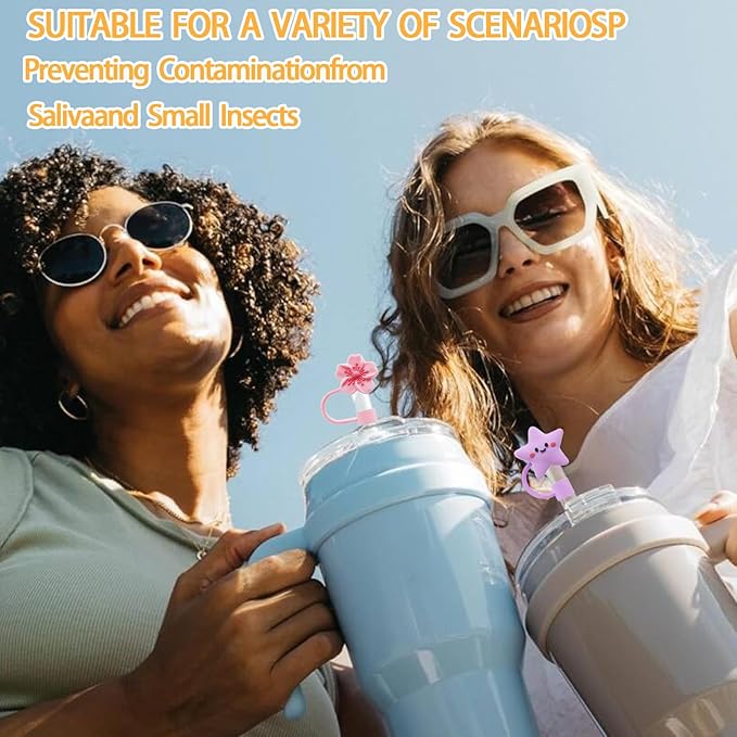 15Pc Straw Cover for Stanley Cup, Silicone Straw Topper for Stanley Cup 30&40oz with Tumblers, 10mm 0.4in Lid Accessories (Reusable)