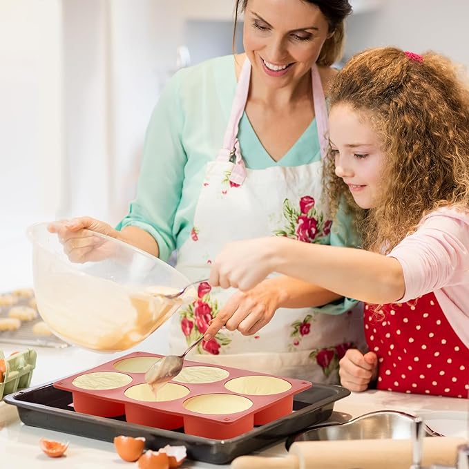 JOERSH 2-PK Silicone Egg Bite Molds Deep 3 Inch Frittata Baking Pans, Non-Stick Round Silicone Molds for Egg Breakfast Sandwich, English Muffin, Cheesecake, Dinner Rolls