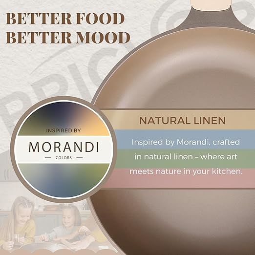 PRICUSIS Nonstick Frying Pan, 8/10/12 Inch Skillet with Stay Cool Handle, Stain/Scratch/Crack Proof, Induction Compatible & Oven Safe, Dishwasher Safe, PTFE & PFOA Free(10-Inch, Natural Linen)