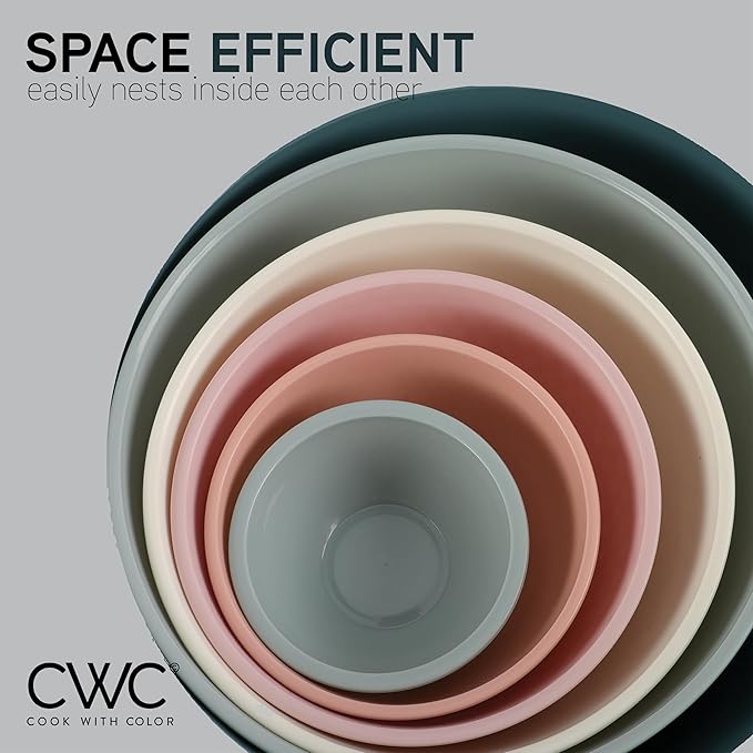 COOK WITH COLOR Mixing Bowls with Lids - 12 Piece Plastic Nesting Bowls Set includes 6 Prep Bowls and 6 Lids, Non Slip Bottom and Embossed Design - Microwave Safe (Teal)