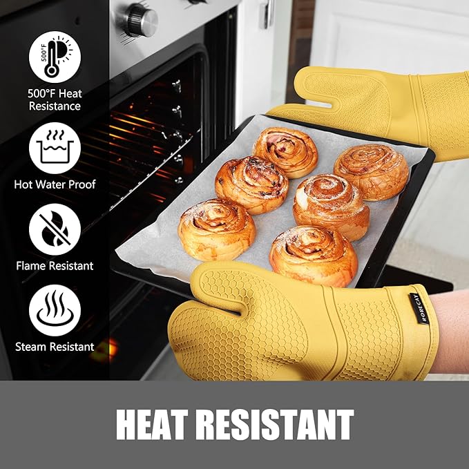 Rorecay Oven Mitts and Pot Holders Sets 6pcs, Extra Long Kitchen Silicone Oven Gloves Heat Resistant 500 Degrees Non-Slip Potholders Hot Pads for Baking Cooking, Quilted Liner, Samoan Sun