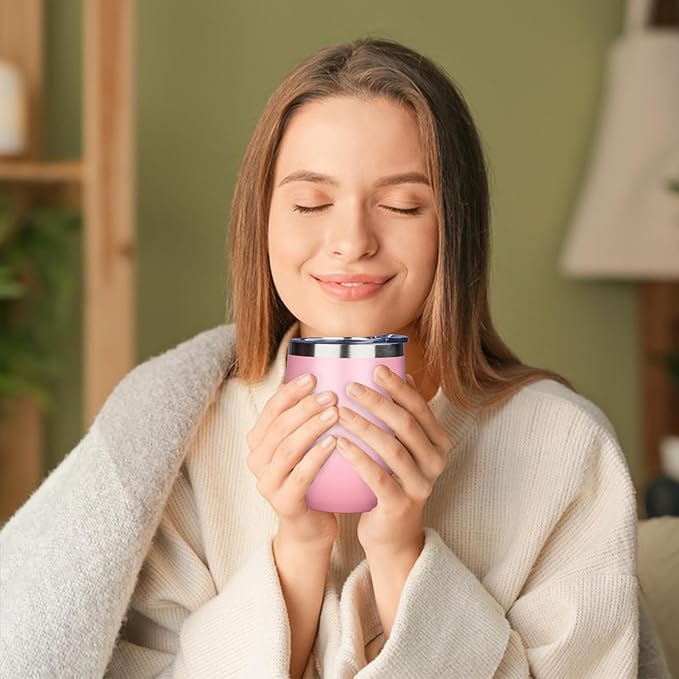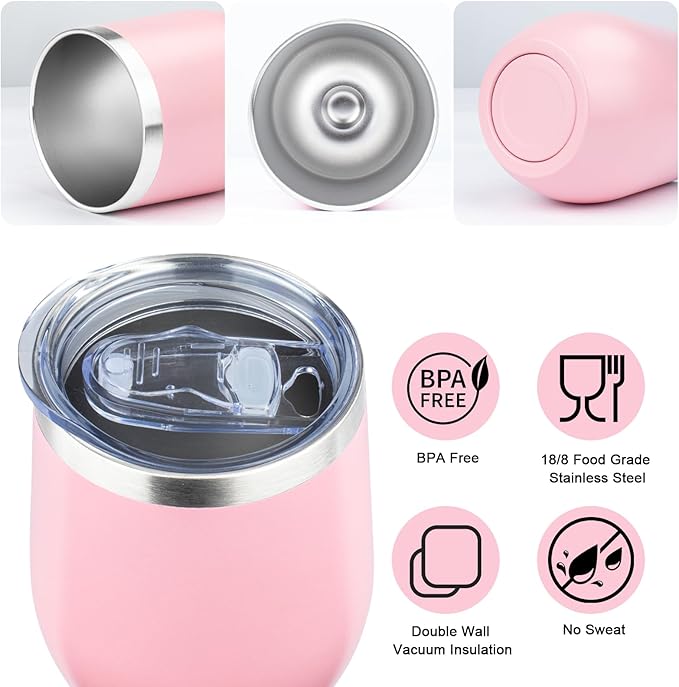 12 Oz Insulated Wine Tumbler with Lid Double Wall Vacuum Stainless Steel Wine Glass Coffee Mug Insulated Tumbler Cup for Champaign, Cocktail, Beer (Multi, 6 Pack)