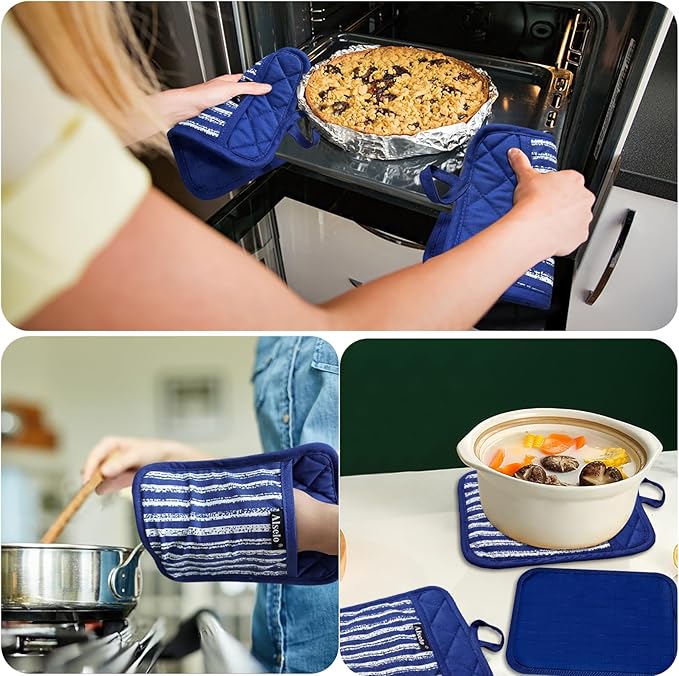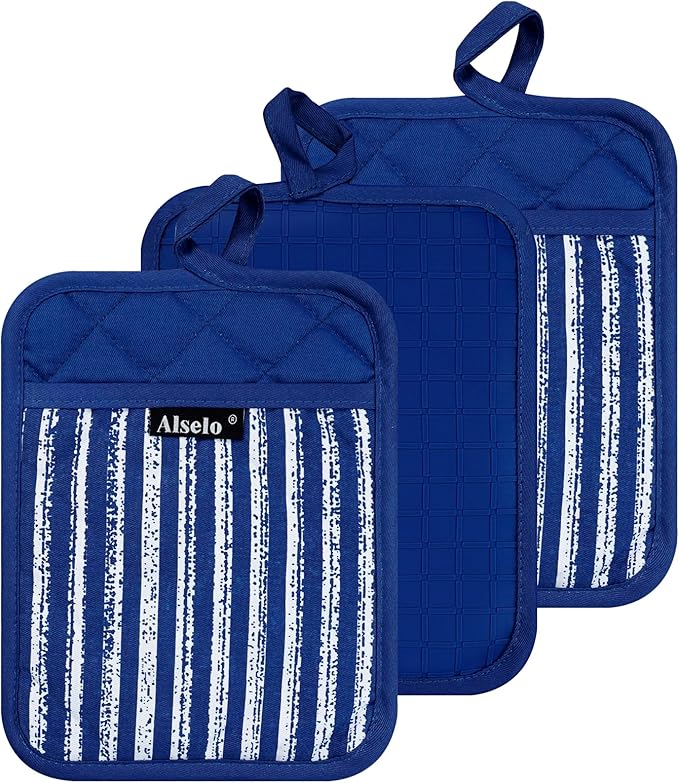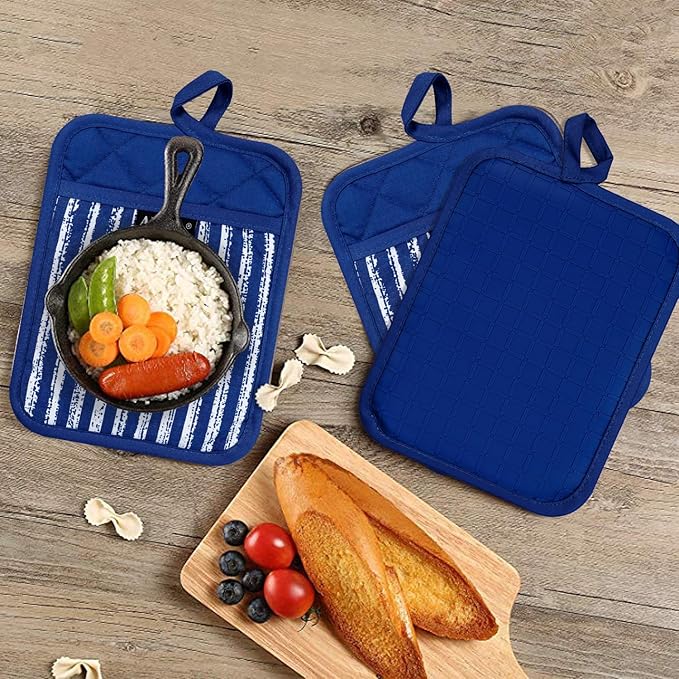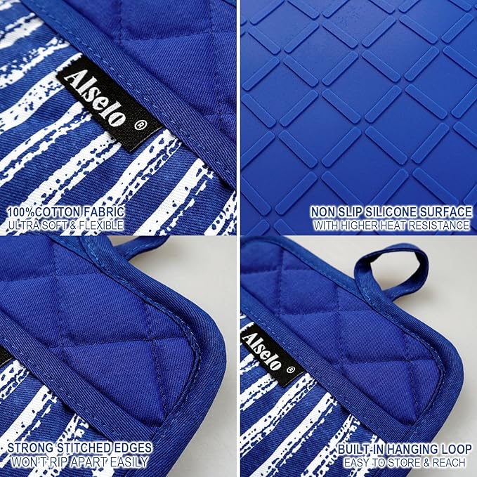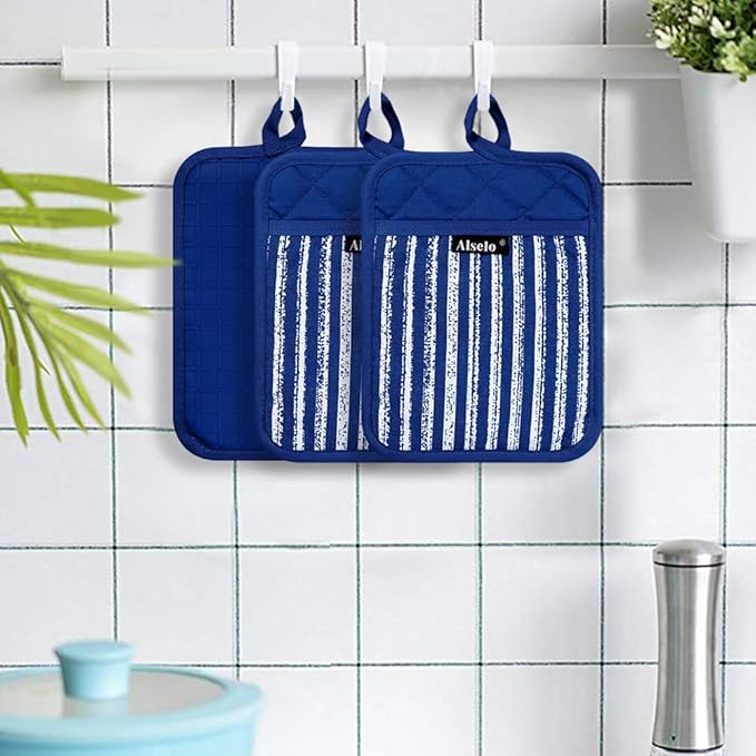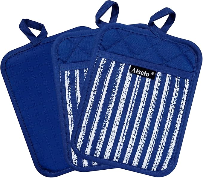 Silicone Pot Holders Set of 3 Heat Resistant & Non Slip Potholders, Professional Oven Hot Pads with Pockets Mitts for Kitchen Cooking Baking Barbecue (Cobait Blue, 3)