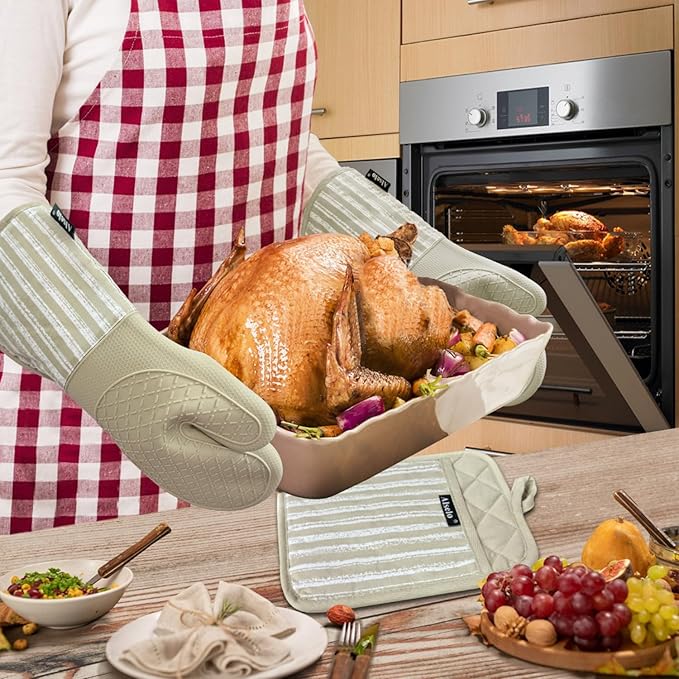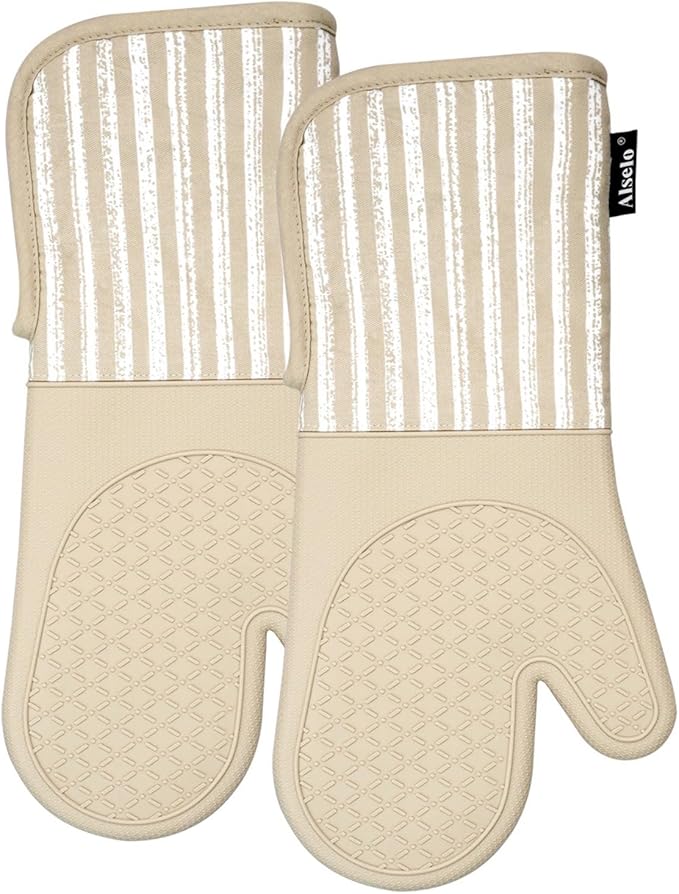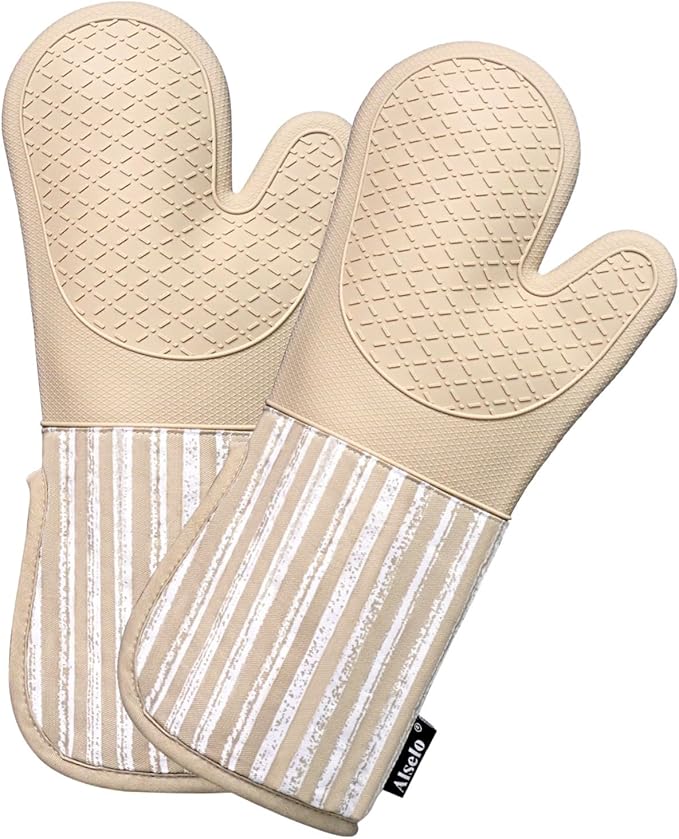 About This 1.EXTRA-LONG LENGTH WITH UNIQUE DESIGN: Alselo kitchen oven mitts with 15-inch length, are widely used for cooking, barbecue,... Read more