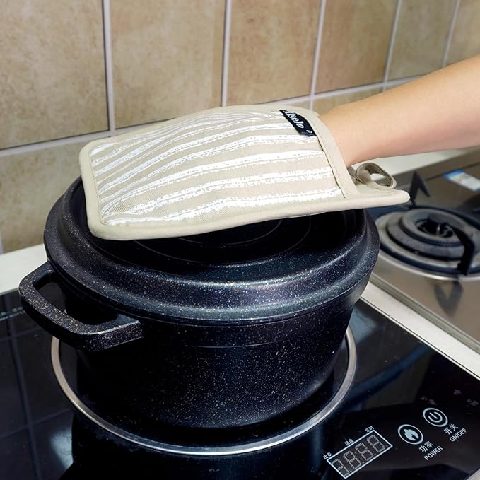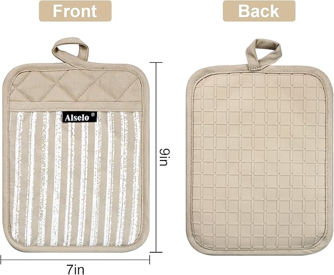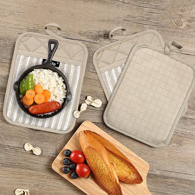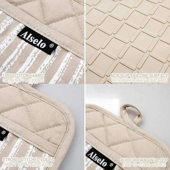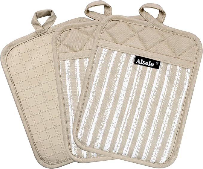 Silicone Pot Holders Set of 3 Heat Resistant & Non Slip Potholders, Professional Oven Hot Pads with Pockets Mitts for Kitchen Cooking Baking Barbecue (Khaki, 3)