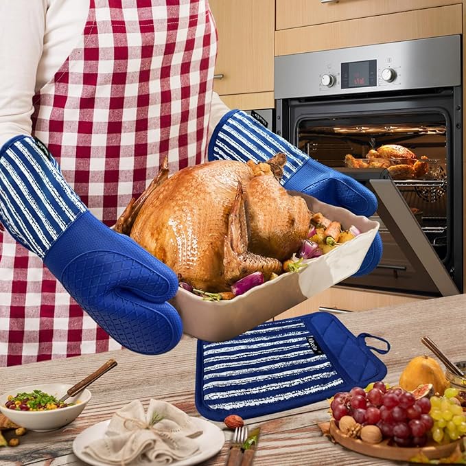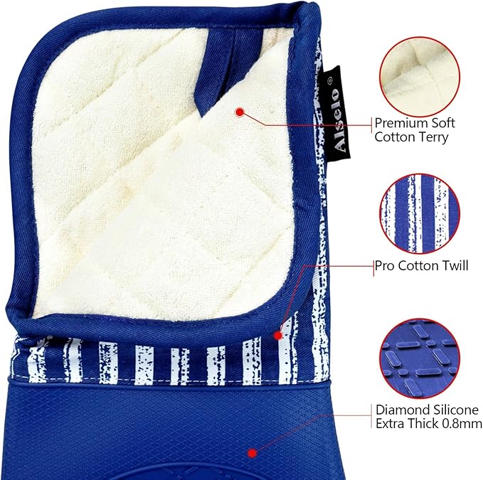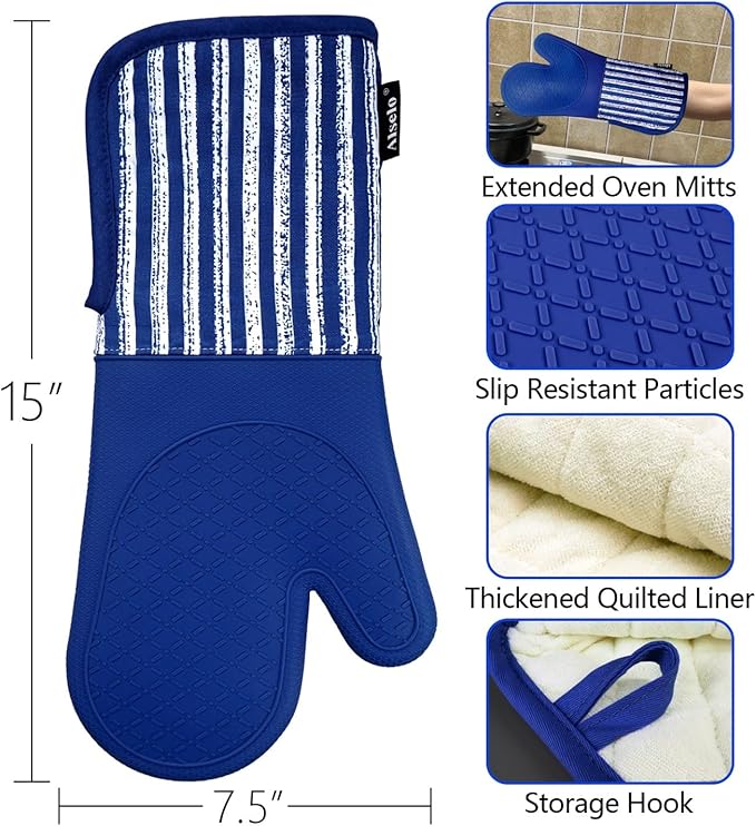About This 1.EXTRA-LONG LENGTH WITH UNIQUE DESIGN: Alselo kitchen oven mitts with 15-inch length, are widely used for cooking, barbecue,... Read more