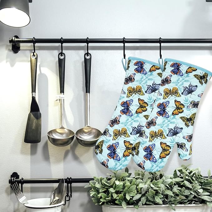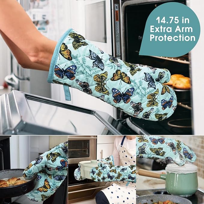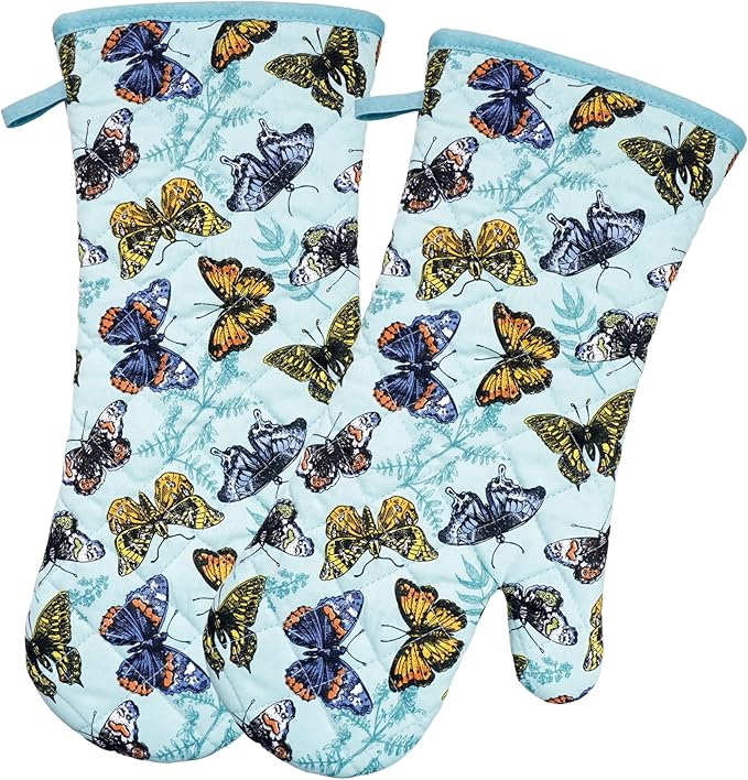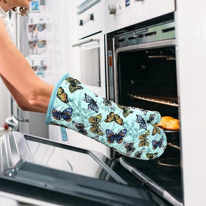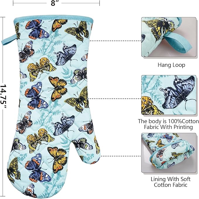 Oven Mitts Cotton Fashion Cute Butterfly Design 1pair Heat Resistant Oven Gloves Safe Cooking Baking Grilling Barbecue Machine Washable Pot Holders (Butterfly)