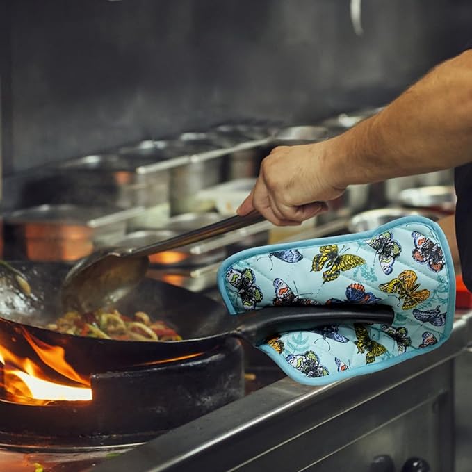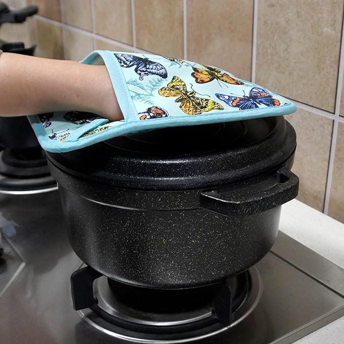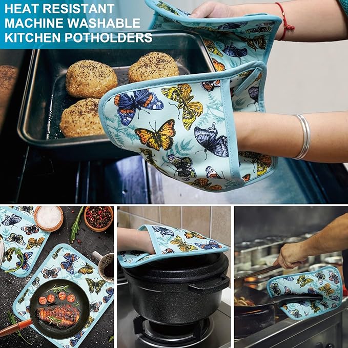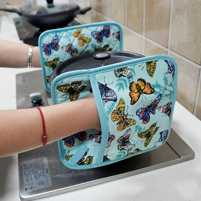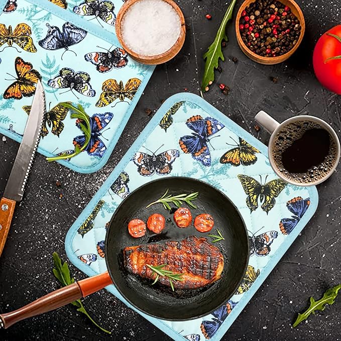 Pot Holders Set of 2 Heat Resistant 480℉ Kitchen 100% Cotton Comfortable Lining Printing Butterfly Flower Women Men Home Cooking Baking Microwave BBQ Gift (Butterfly potholders)