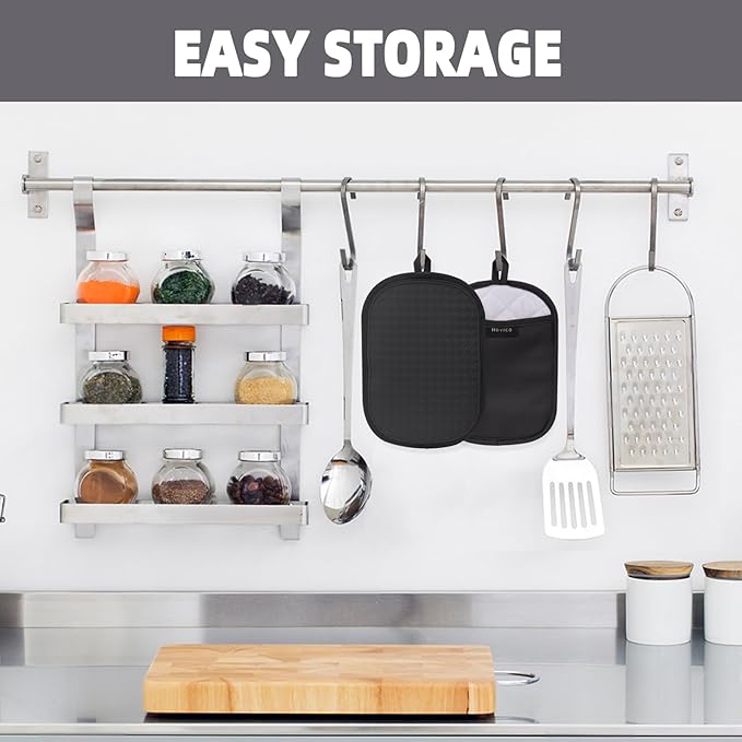 Hovico 2PCS Silicone Pot Holders, Oven Mitts Heat Resistant Hot Pads with Pockets, Non Slip Pot Holder for Kitchen Baking and Cooking| 9.8 x 7 Inches | Towel Cloth Interior Lining - Black