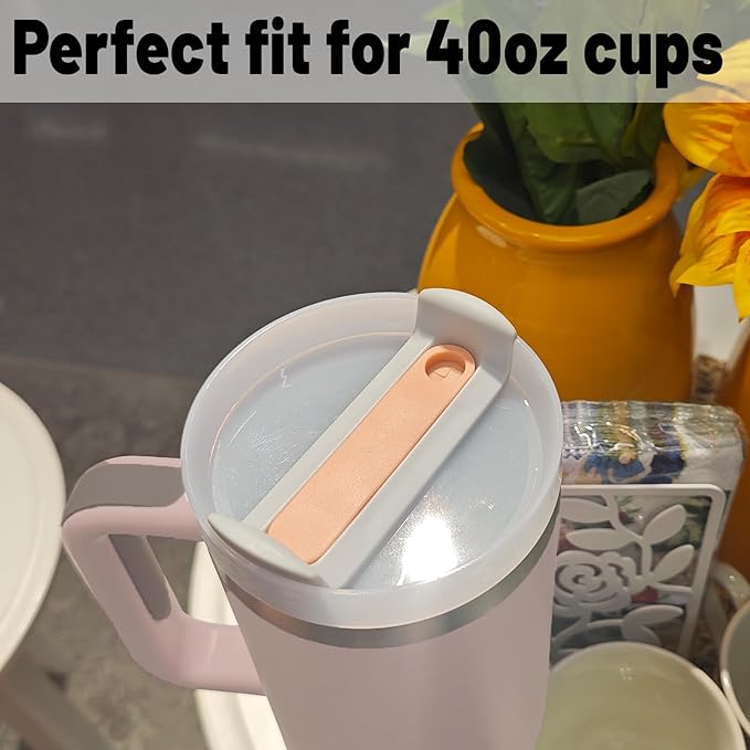 40 OZ Tumbler Lid Replacement - 2 Pack Spill Proof Covers for Stanley Travel Tumbler (Opaque - Rose Quartz)