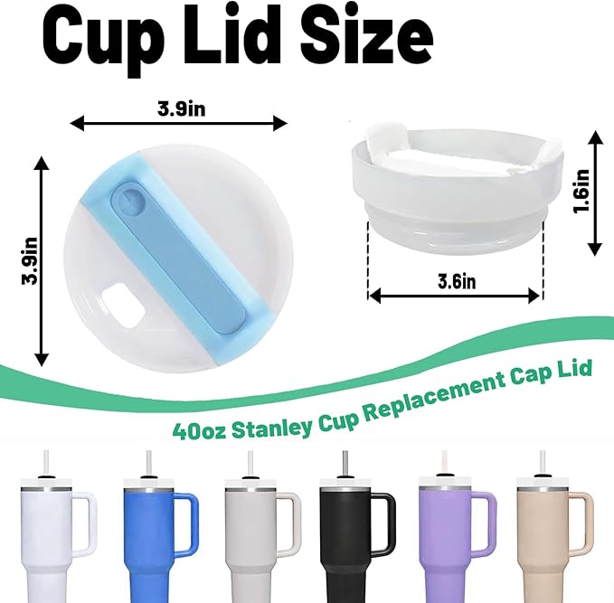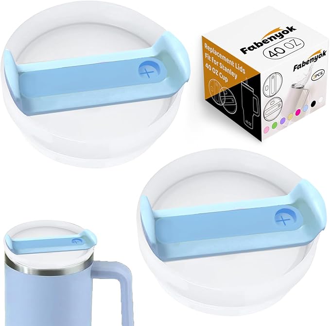 40 OZ Tumbler Lid Replacement Fit for Stanley Cup, 2 Pack Replacement Lids, Spill Proof Tumbler Covers for Stanley Cup Accessories (Opaque - Azure)