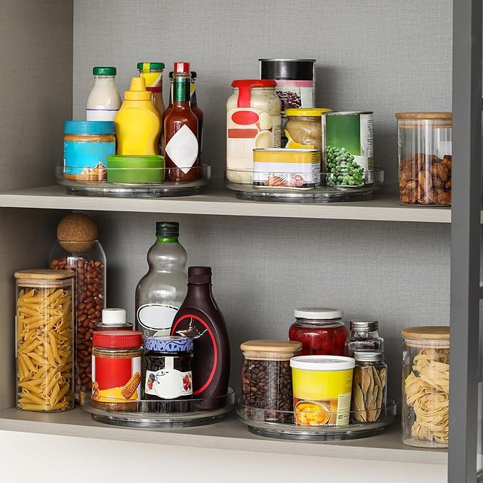 4 Pack, 10 Inch Clear Non-Skid Lazy Susan Organizers - Turntable Rack for Kitchen Cabinet, Pantry Organization and Storage, Fridge, Bathroom Closet, Vanity Countertop Makeup Organizing, Spice Rack