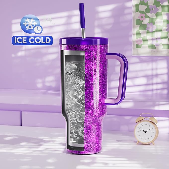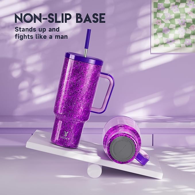 About This Hello, Cold Drinks: With double-wall vacuum insulation, Meoky 40 oz tumbler with handle and straw beats the heat... Read more