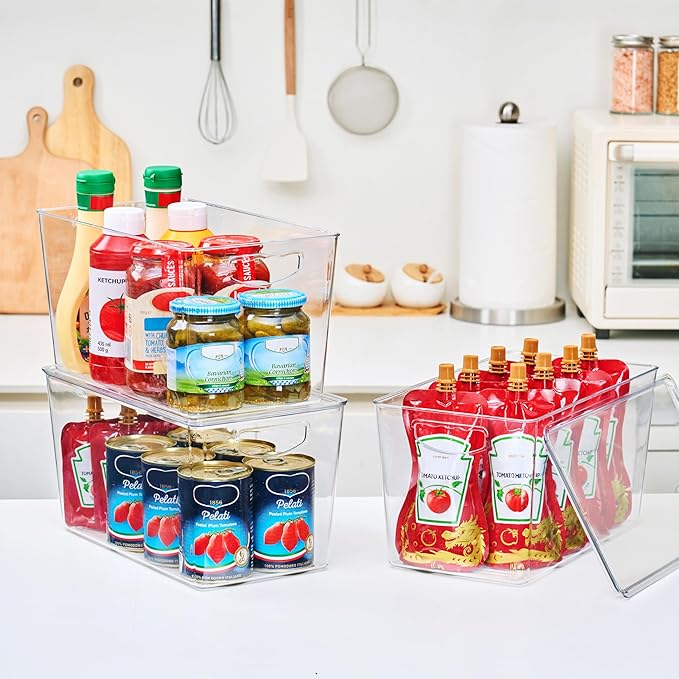 theaoo Clear Storage Bins with Lids Stackable - XLarge Plastic Containers for Pantry Organization and Storage - Perfect for kitchen,Fridge,Laundry Room,Bathroom,Garage,Closet,Cabinet Organizer -4 Pack