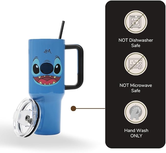 Bioworld Disney Stitch Face 40 Oz Blue Stainless Steel Tumbler with Handle