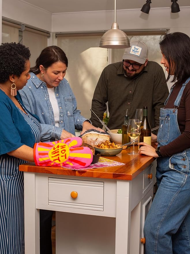 Blue Q Hot Sh*t Funny Oven Mitts - Cute Oven Mitts, Home Kitchen Gifts, Cooking Accessories, Super-Insulated Quilting, Comfy Natural-Fitting Shape, Pot Holders, 100% Cotton, Size 12.5" L x 7.5" W