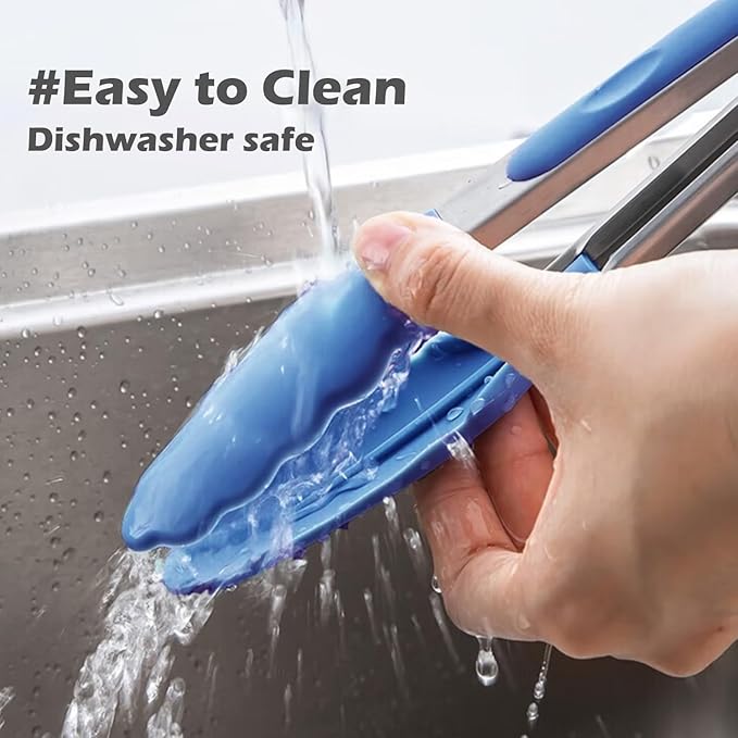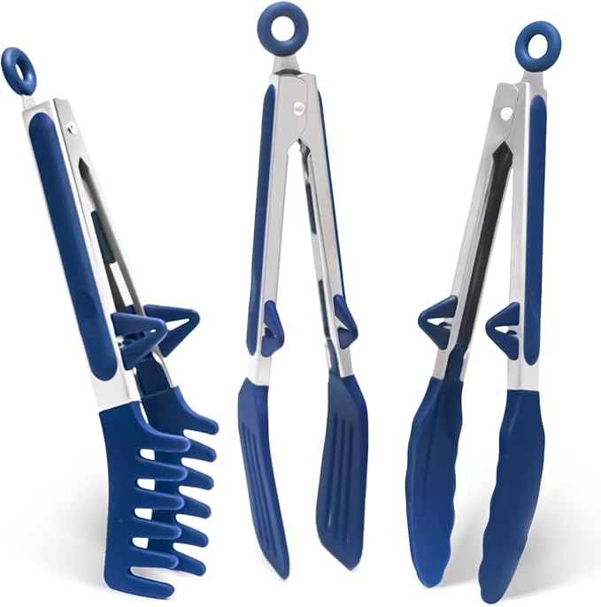 Kitchen Tongs, 9 Inch Tongs for Cooking with Silicone Tips, Food Grade Small Silicone Tongs, Mini Serving Tongs for Nonstick Pans, BBQ, Salad, Set of 3, Blue