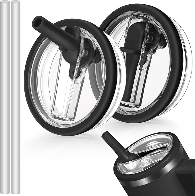 40oz Flip Straw Leak Proof Lid for Stanley H2.0 Quencher Protour Tumbler, 2 Pack Spill Proof Lid Replacement Straw Cover Top for 40 OZ Stanley Cup Accessories (Black, Black)