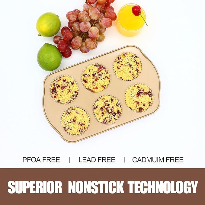 About This 【6-CUP JUMBO MUFFIN PAN SET】2 Pack extra large muffin pans (3.5inch dia) with champagne gold coating. Stackable design... Read more