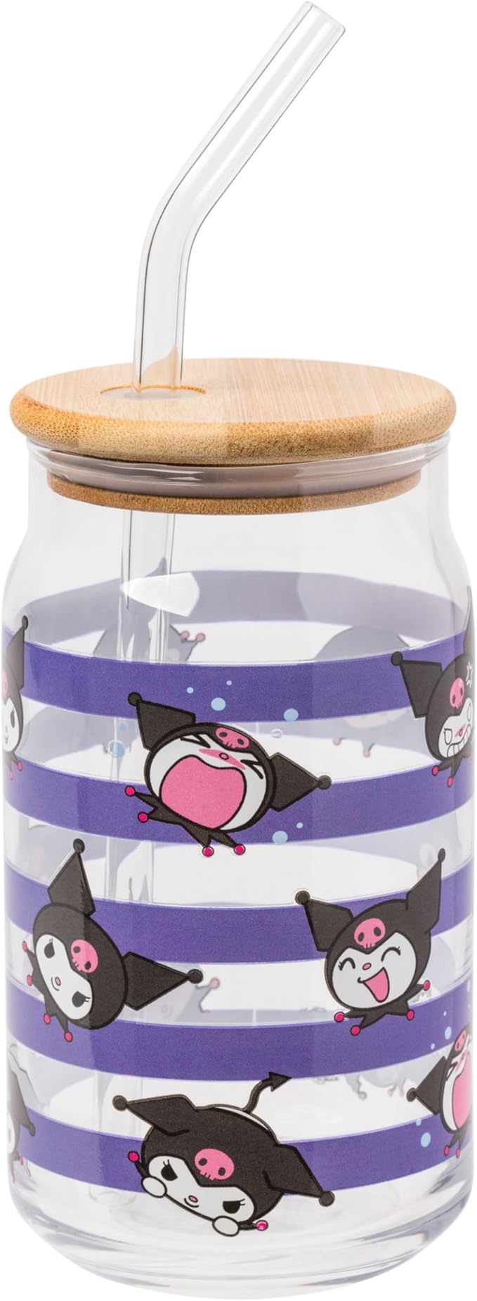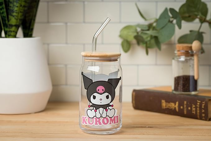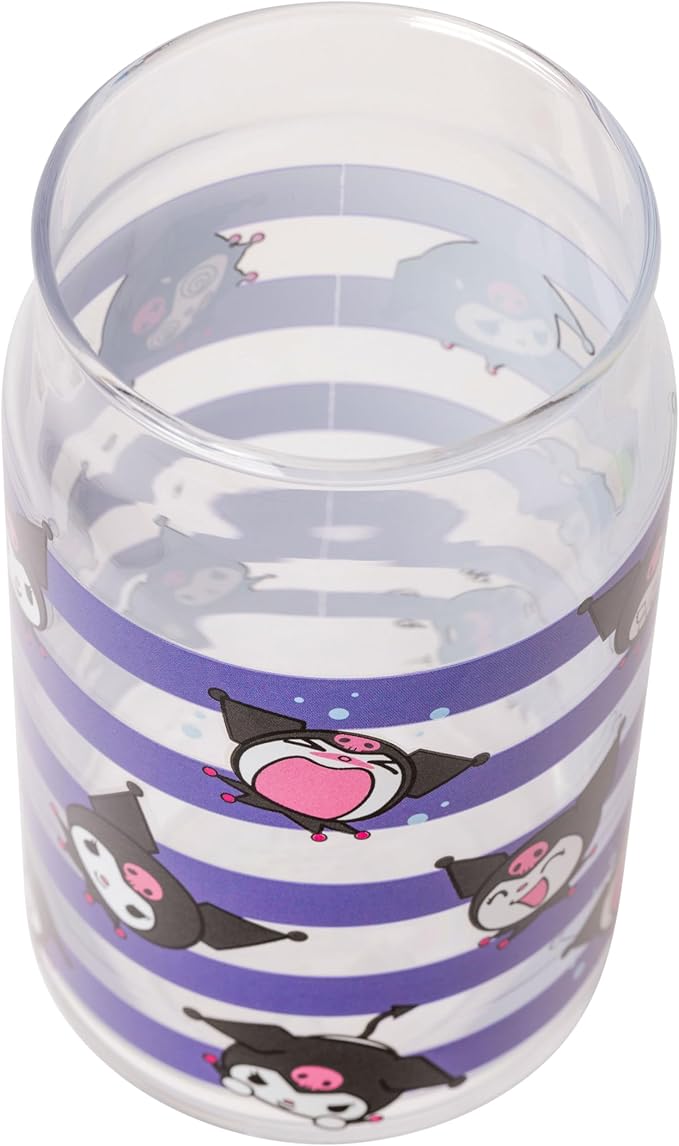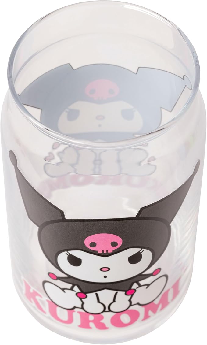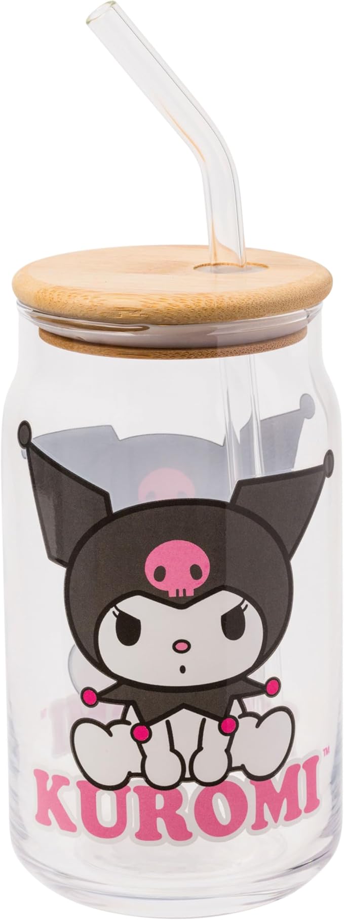 Silver Buffalo Sanrio Hello Kitty and Friends Kuromi 2 Pack Glass Jar Tumbler with Bamboo Lid and Glass Straw, 16 Ounces