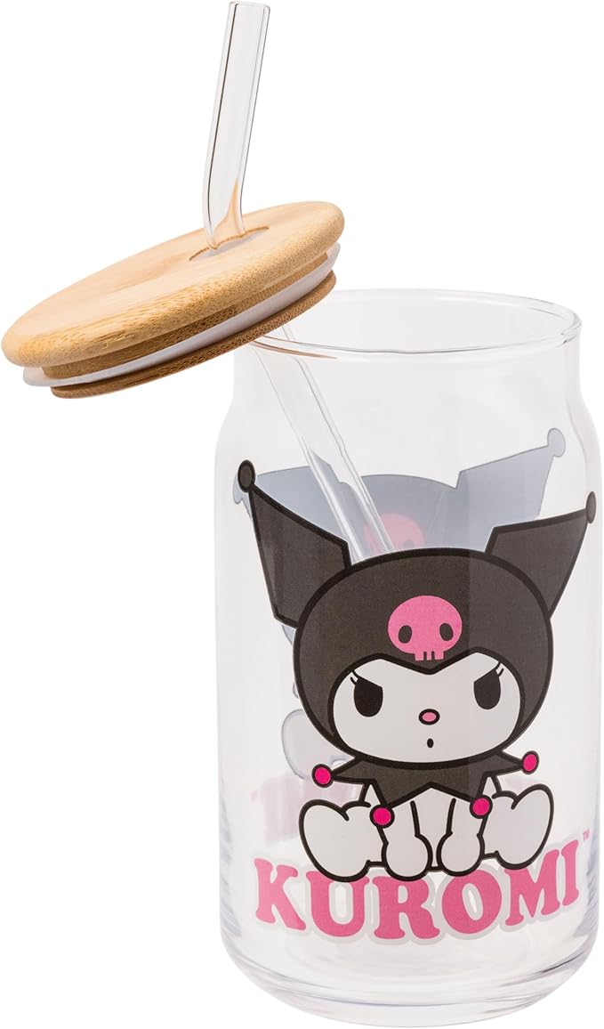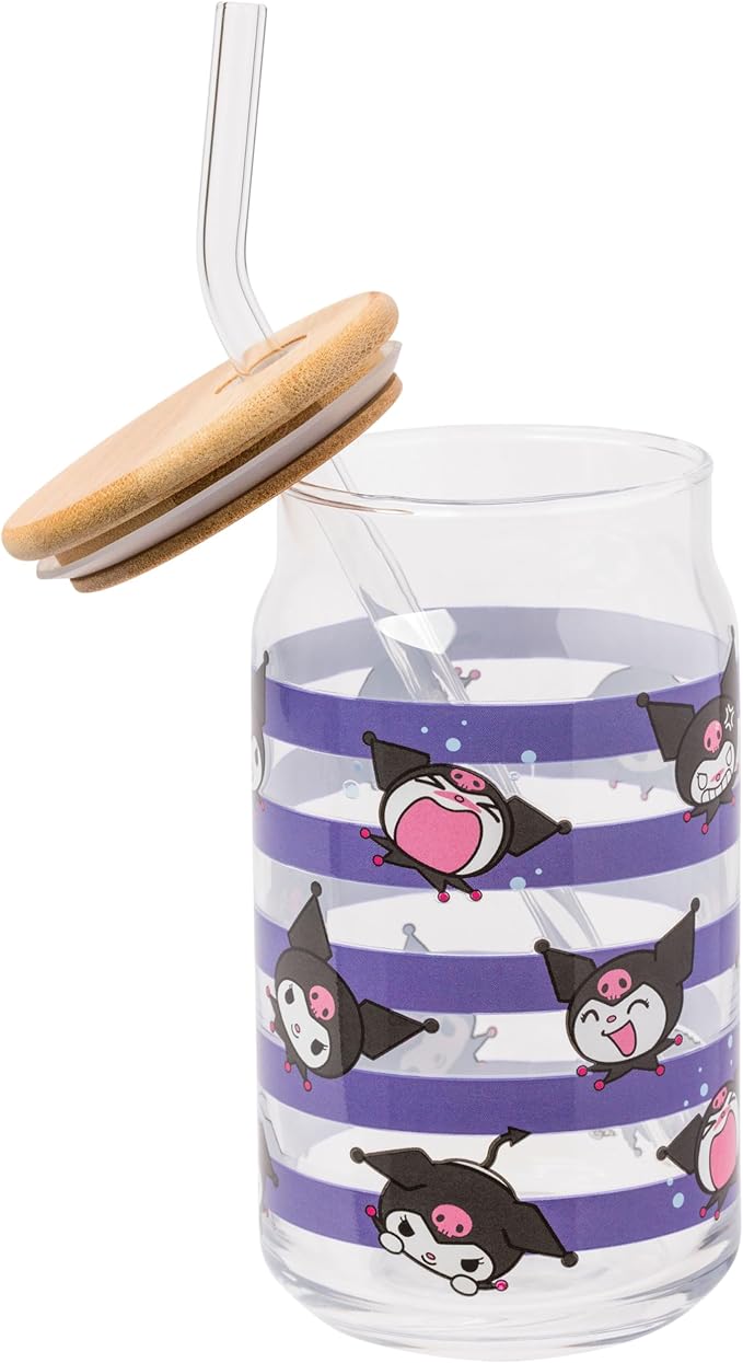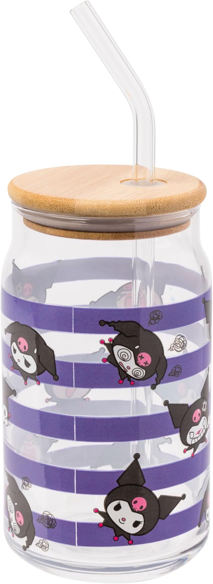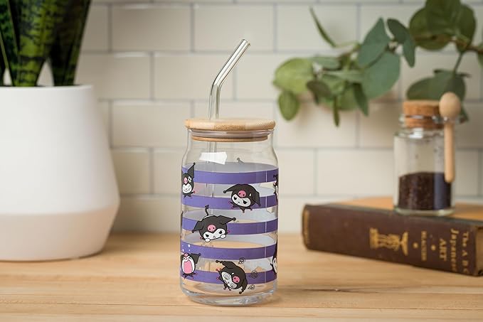Silver Buffalo Sanrio Hello Kitty and Friends Kuromi 2 Pack Glass Jar Tumbler with Bamboo Lid and Glass Straw, 16 Ounces